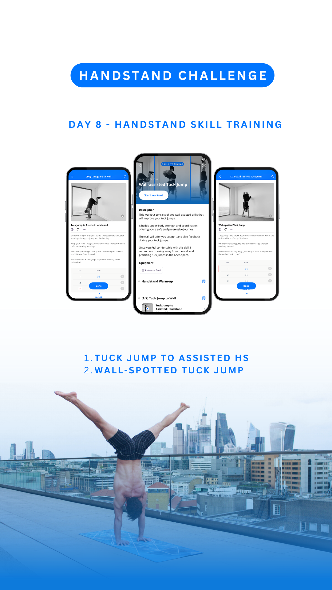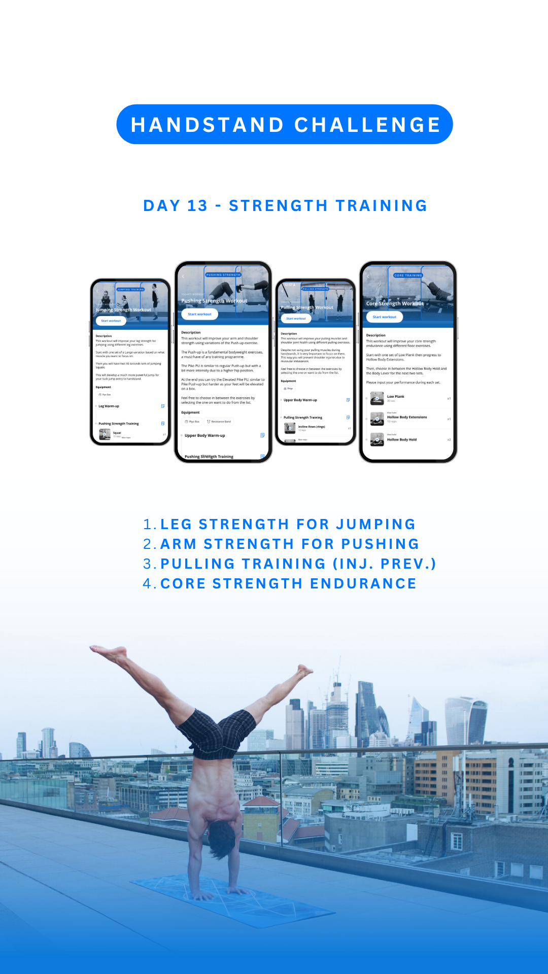 You will also build lower body explosiveness for more control during jumping to handstand.