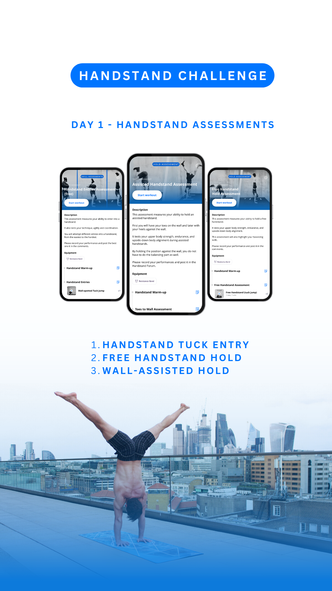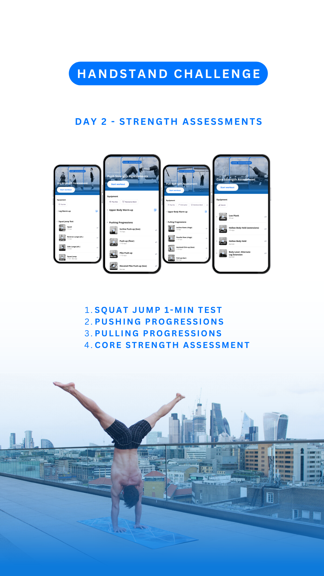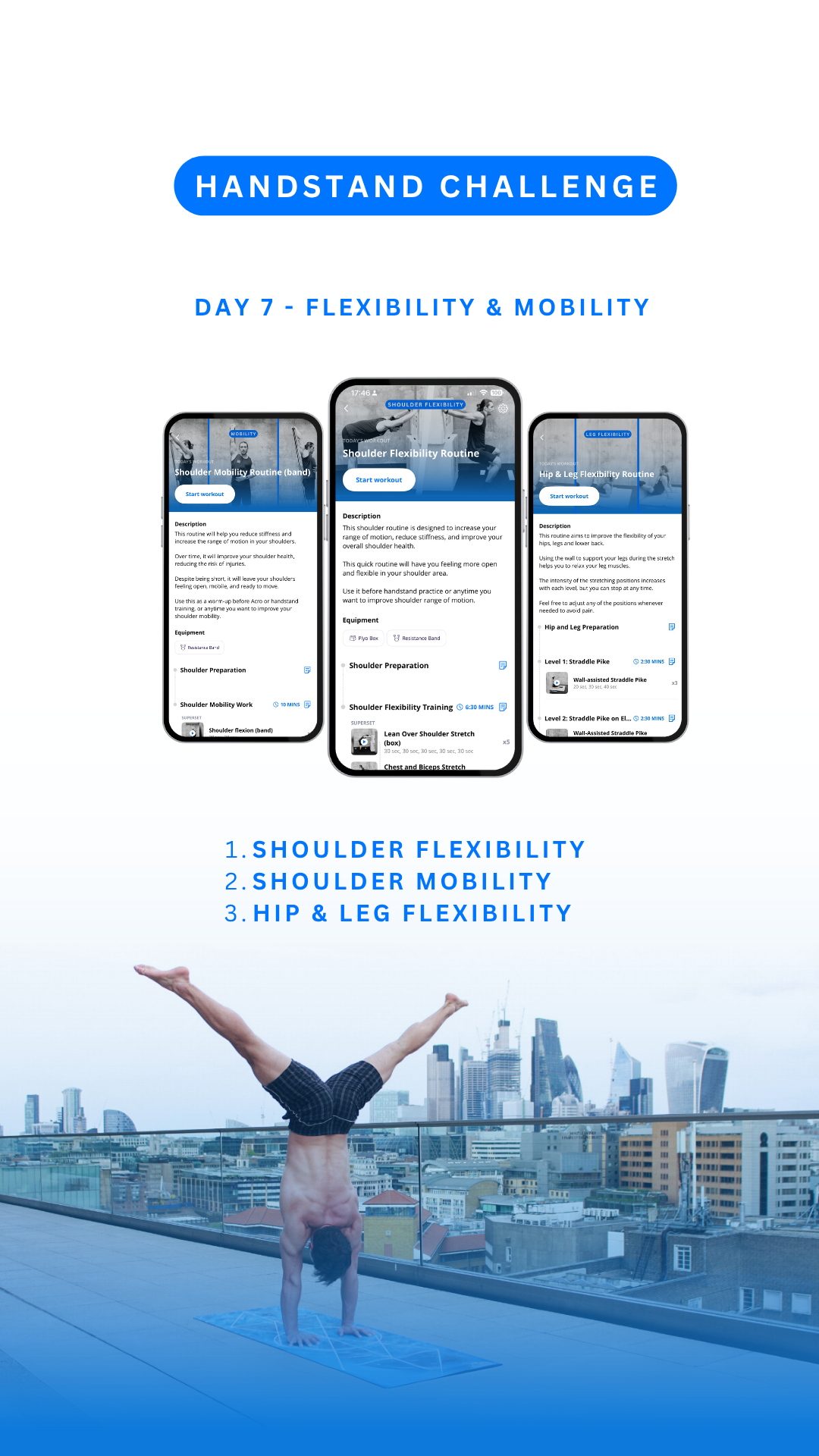 These daily workouts will help you improve a specific component: from balancing skills, to inverted endurance, strength and flexibility.