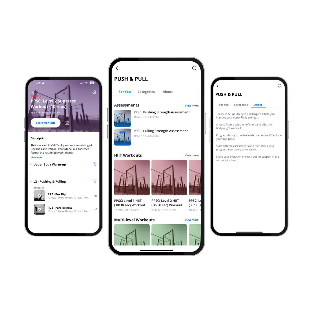 Pushing and pulling exercises organised in short and effective bodyweight workouts.
