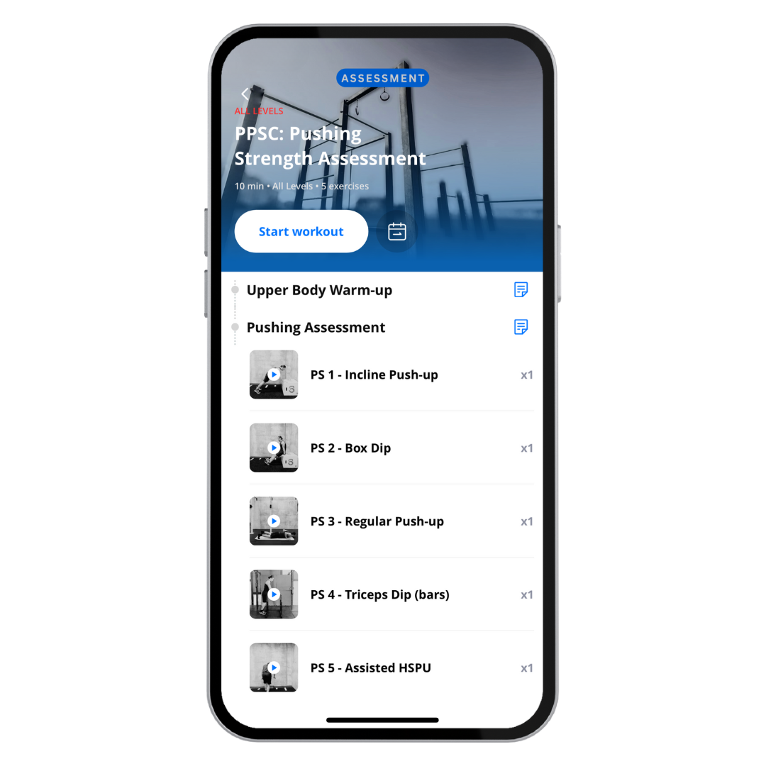 This checks your current level of strength by measuring how many repetitions you can perform of each exercise (you want to do).
